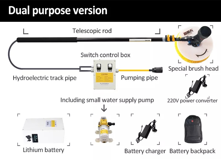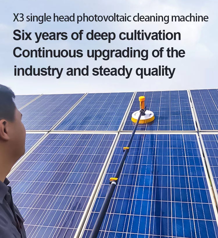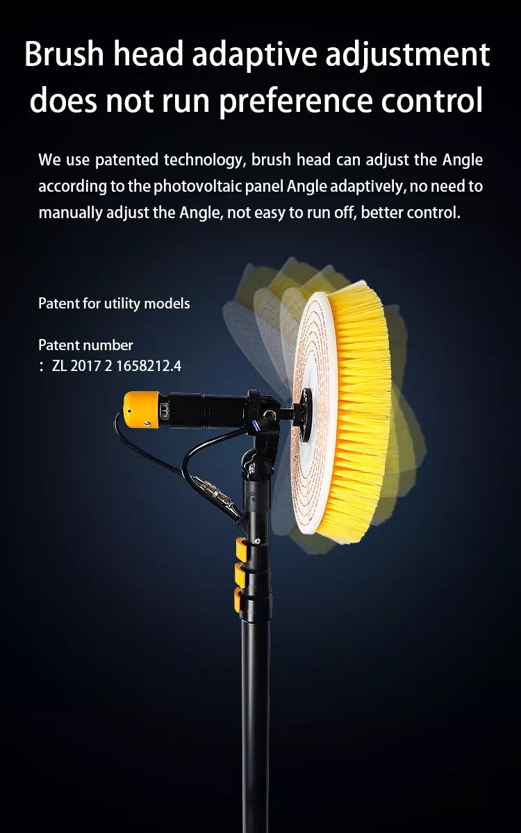 Light weight and stable: With light weight design, the equipment is easy to carry, less noise, easy to use. Using adaptive angle adjustment, T-type damping structure will automatically make the brush head parallel to the photovoltaic panel according to the angle of the cleaning surface.